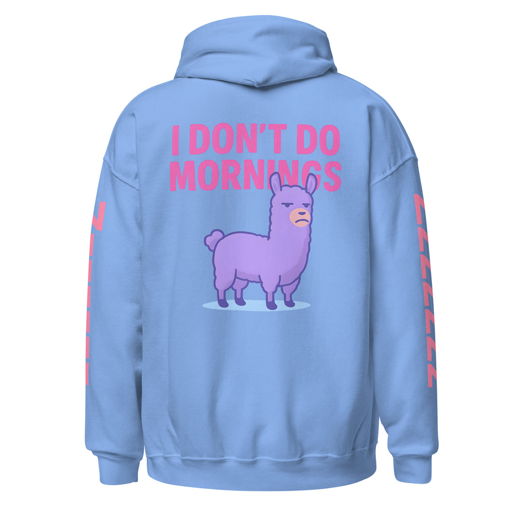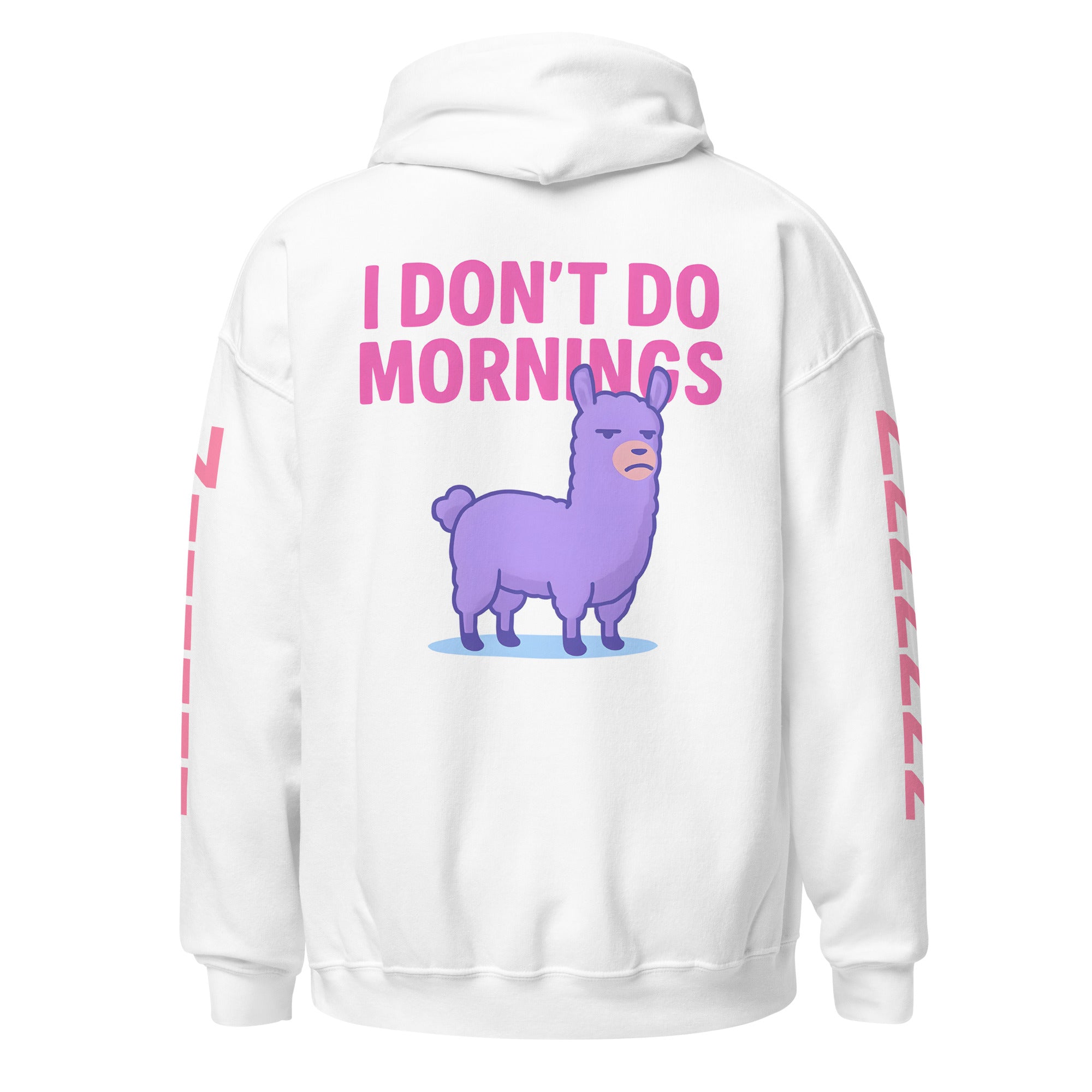 lama hettegenser, morsom hettegenser, not a morning person genser, oversized hettegenser dame, unisex hoodie, myk fleecegenser, gave til henne, gave til ham, koselig genser.